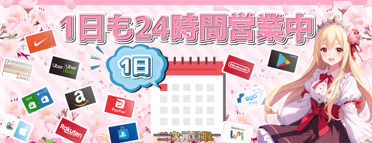 二次元買取は365日・年中無休で稼働中! 2026年3月1日ももちろん通常運転、24時間営業でフル稼働です! 24時間営業だから振込もスピード対応 天音の他にもスタッフが常駐しているから、電話・LINEのサポートも24時間体制! 眠らない二次元ワールドでみなさ... -